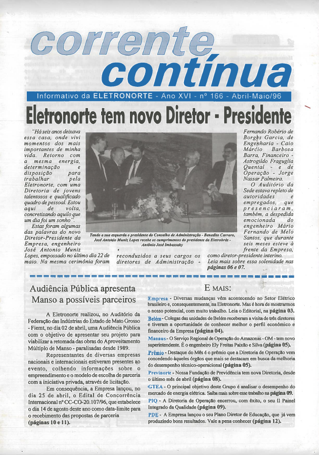 Conjunto documental composto por recorte de reportagens e notas falando sobre a nomeação de José Antonio Muniz para o cargo de diretor presidente da Eletronorte. O dossiê possui também o discurso de posse proferido pelo titular no momento em que assumiu o cargo na empresa.
