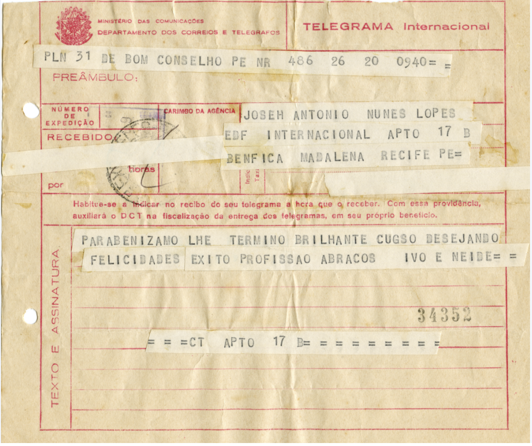 Conjunto documental composto por telegramas de felicitações recebidos pelo titular em decorrência da sua formatura.
