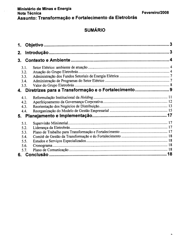 Documento que contém informações que tem como finalidade a transformação e o fortalecimento da Eletrobras, tornando e empresa mais competitiva no mercado.