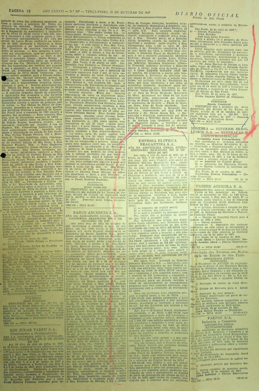 Documentos referentes à Assembleia Geral Extraordinária da Empresa Elétrica de Bragantina - EEB, realizada em 23 de maio de 1967, tendo como ordem do dia o aumento do capital social, reforma do estatuto e outros assuntos de interesse da empresa.