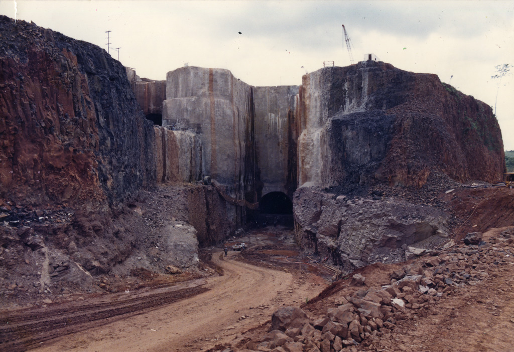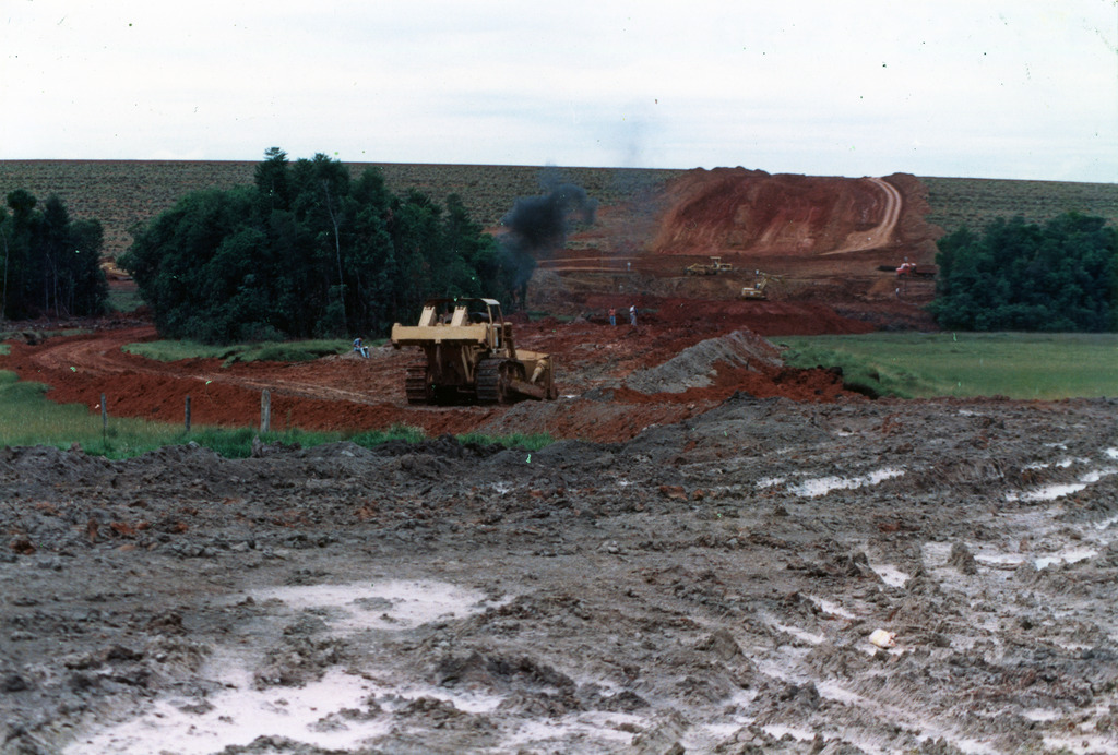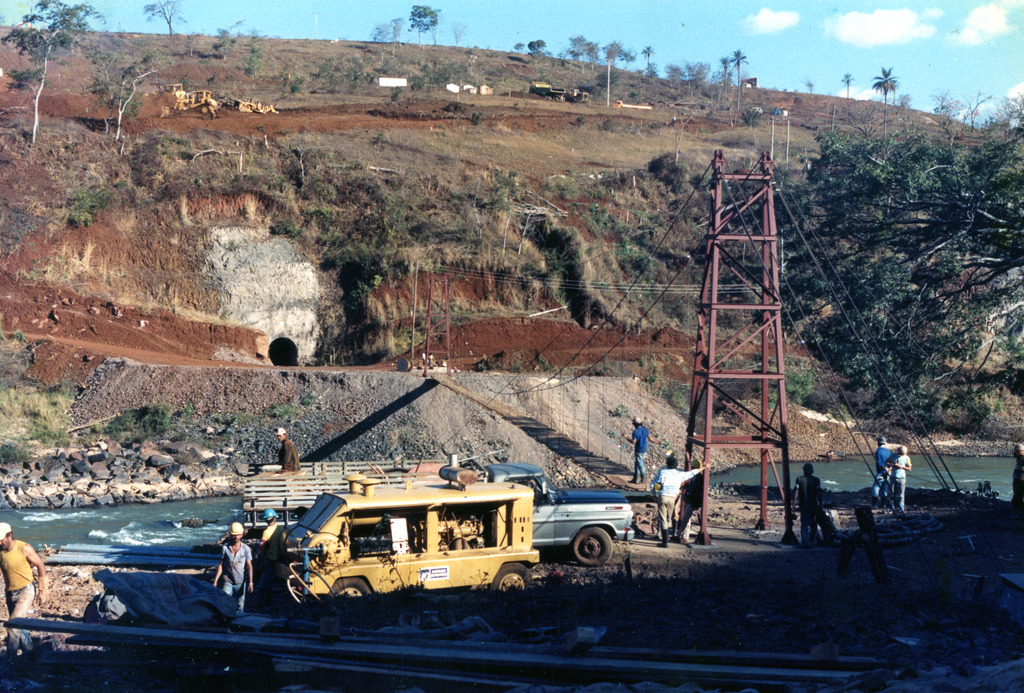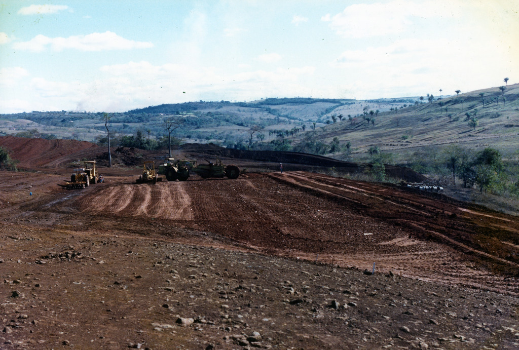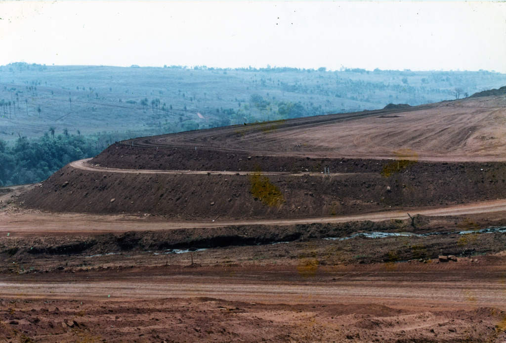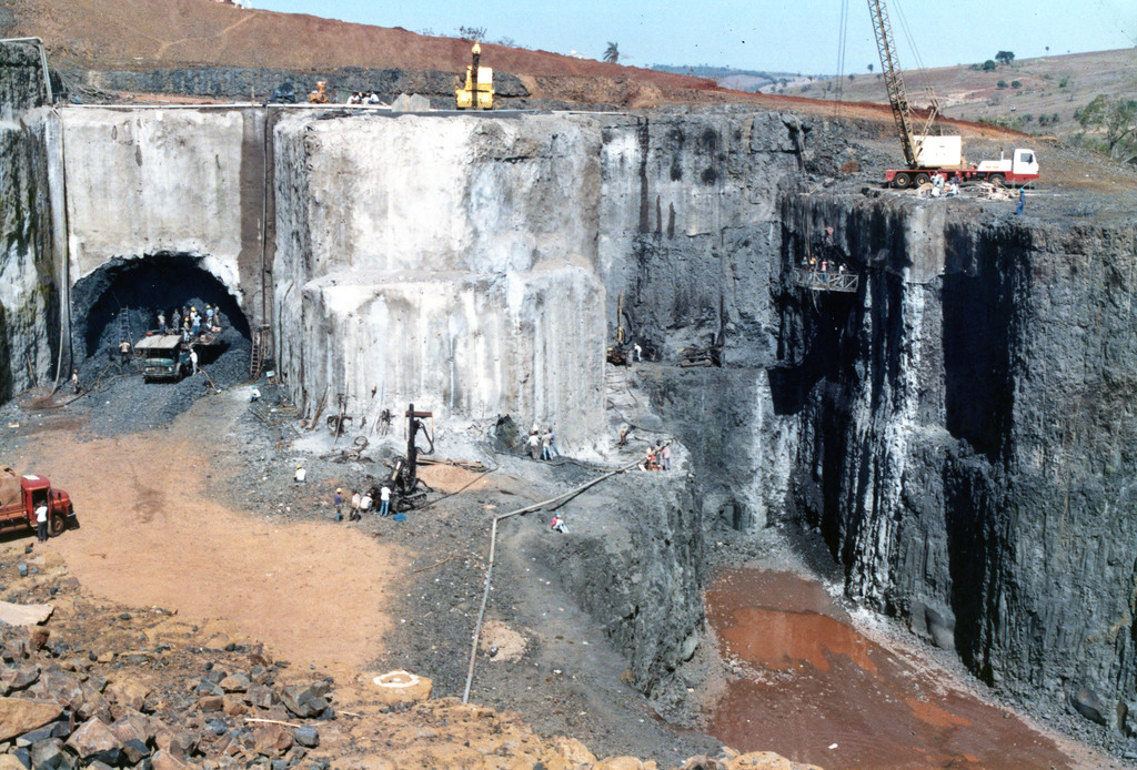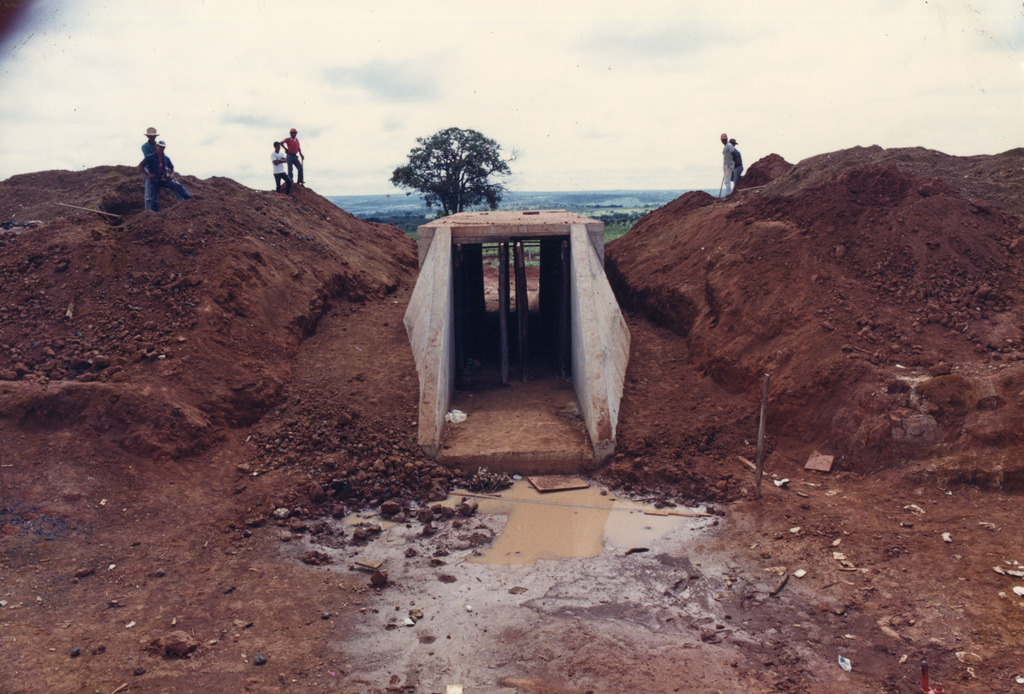 Fotografias referentes a construção da Usina Hidrelétrica Nova Ponte, apresentando imagens das obras civis principais: canal de adução, canal de descarga, subestação, canteiro de obras, túnel de desvio, ensecadeira, Casa de Força e da Rodovia Nova Ponte/Uberaba.
