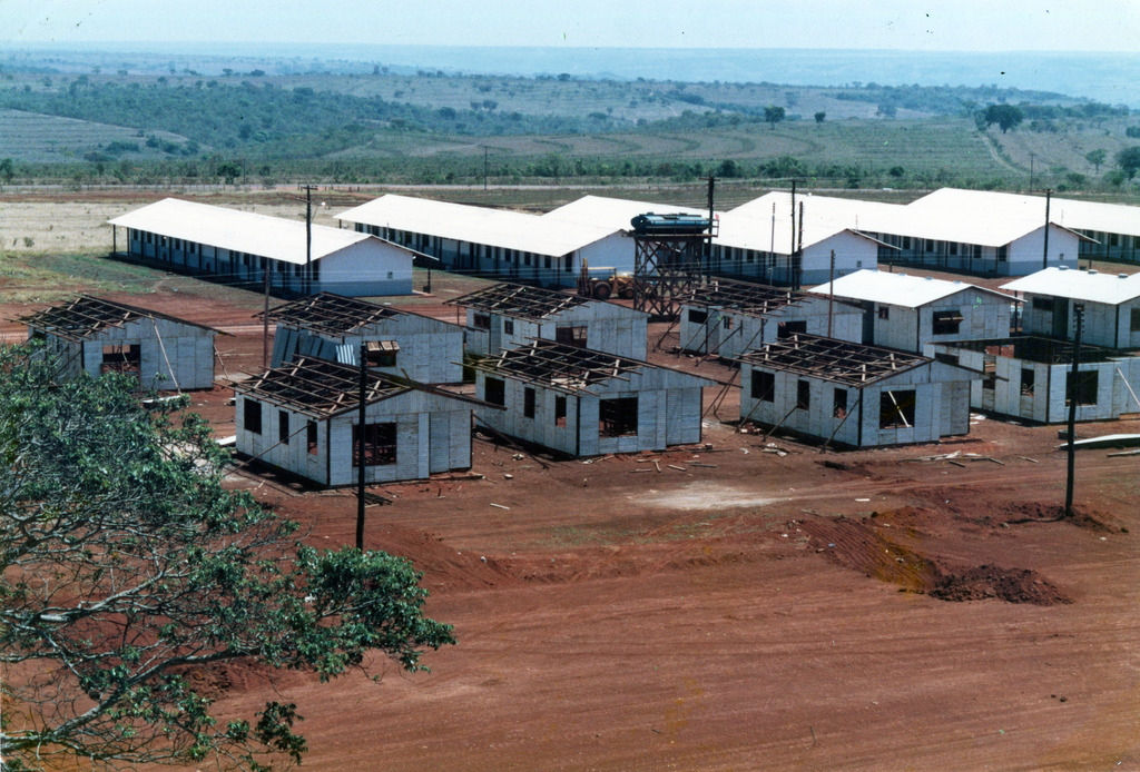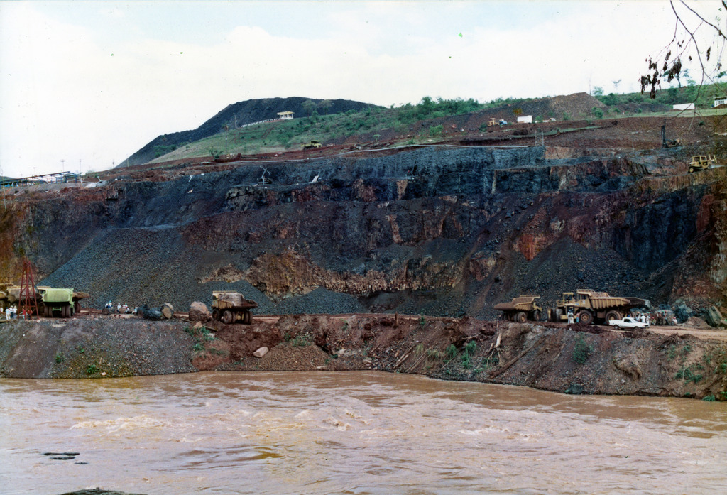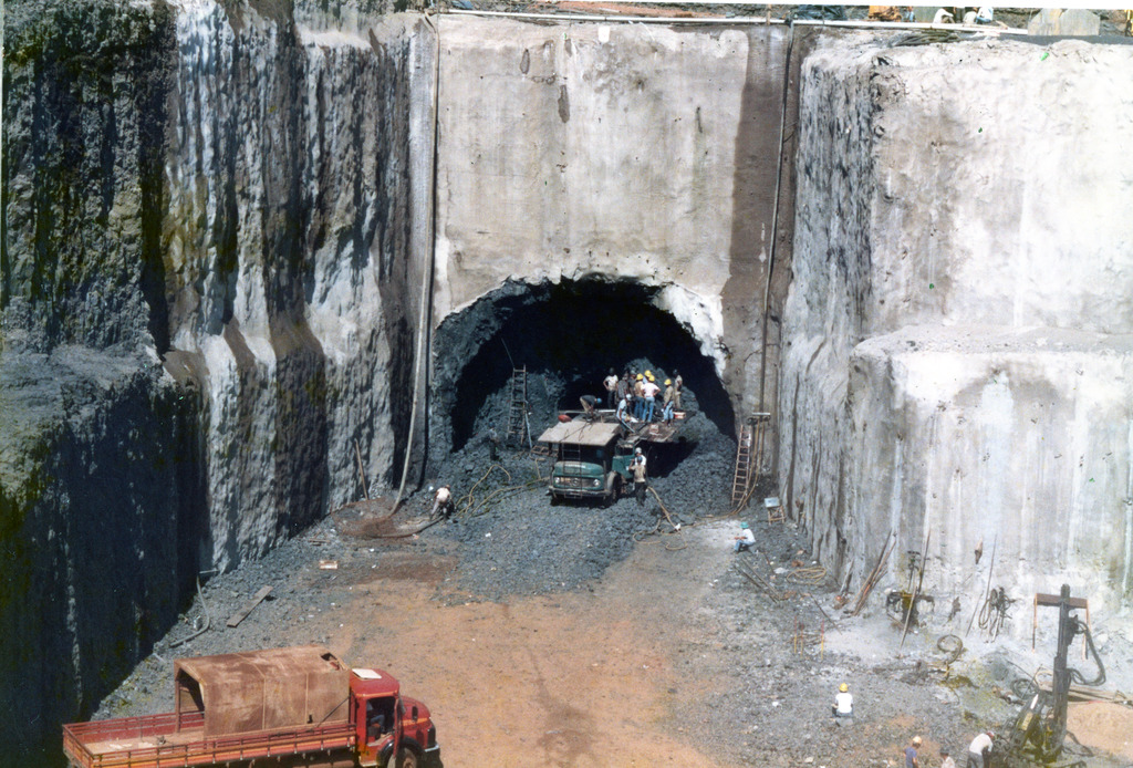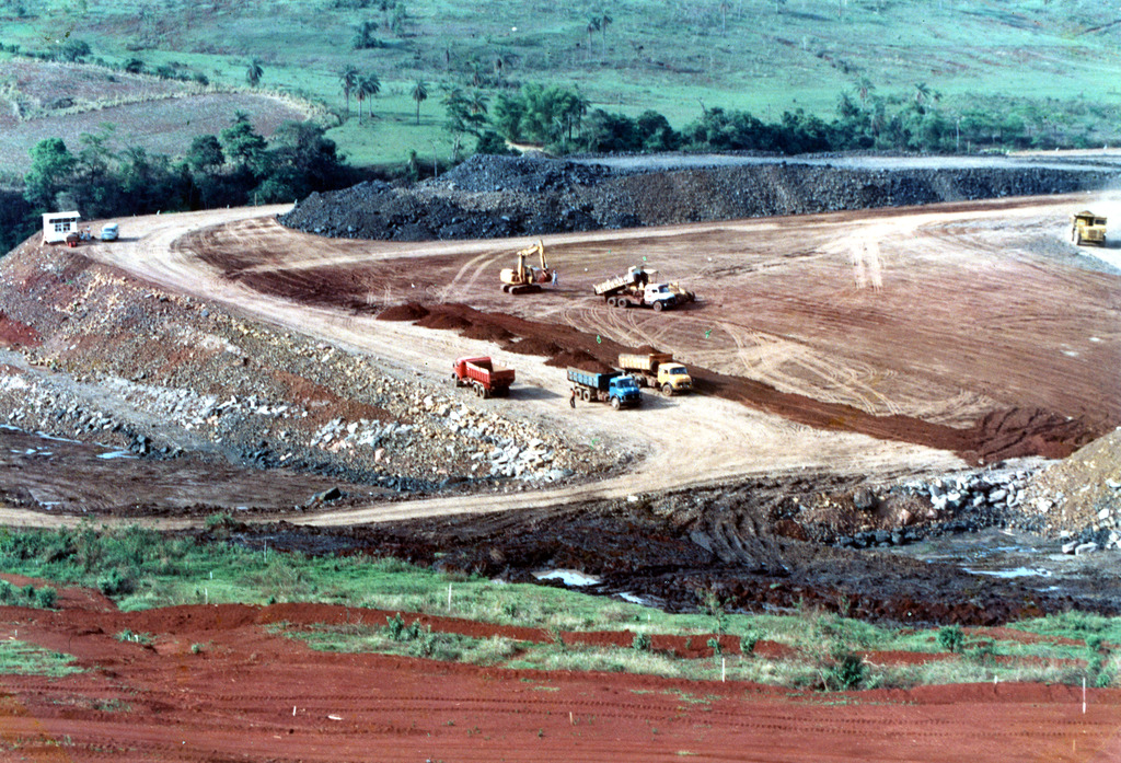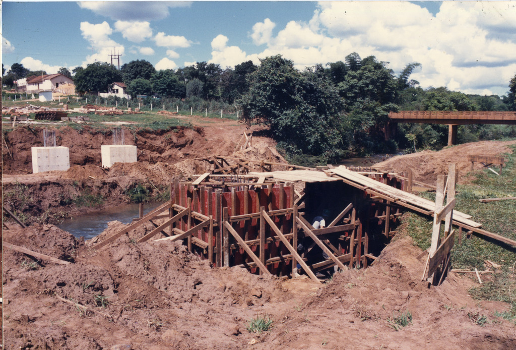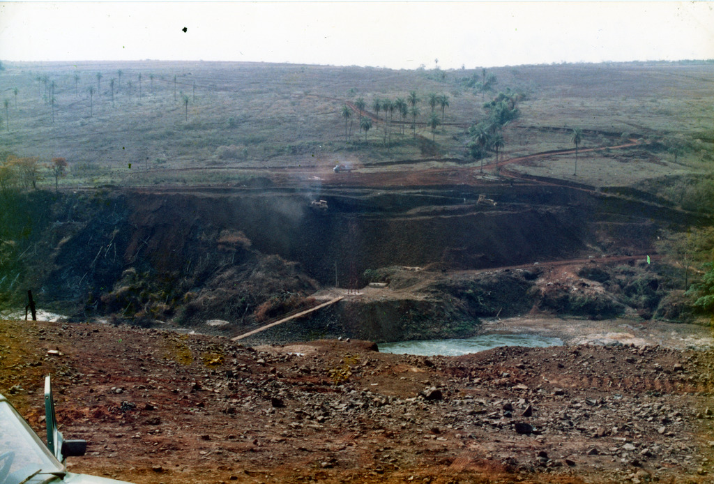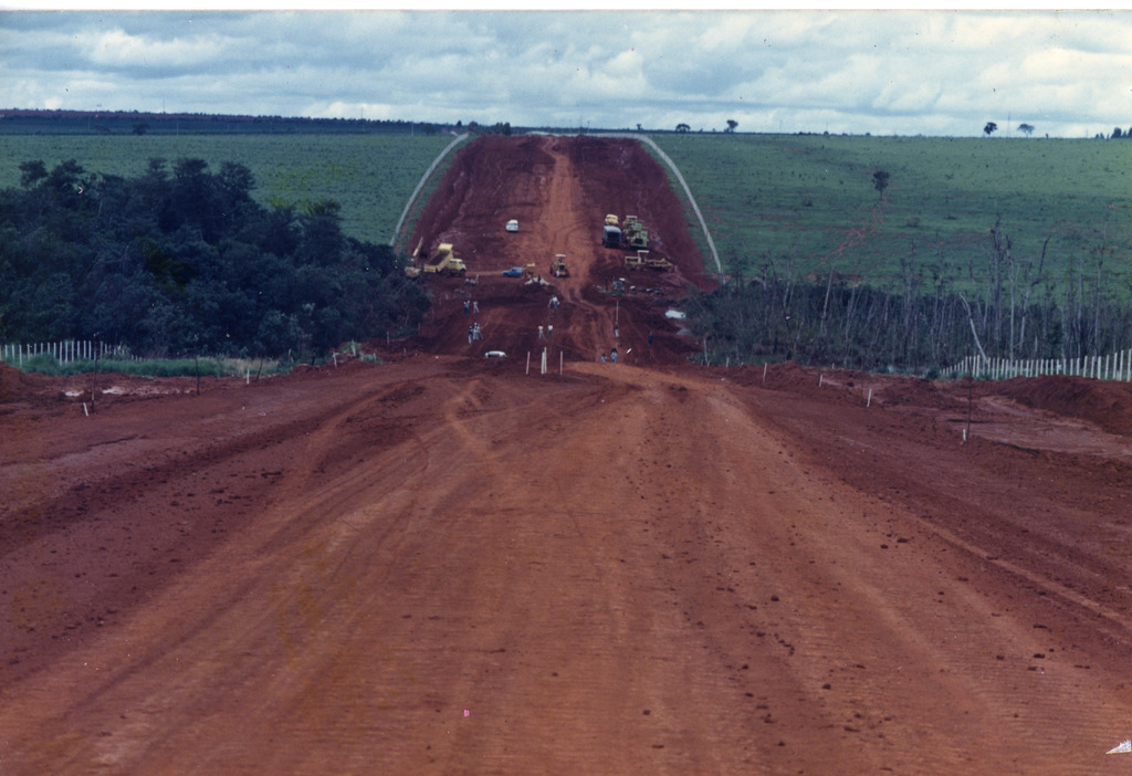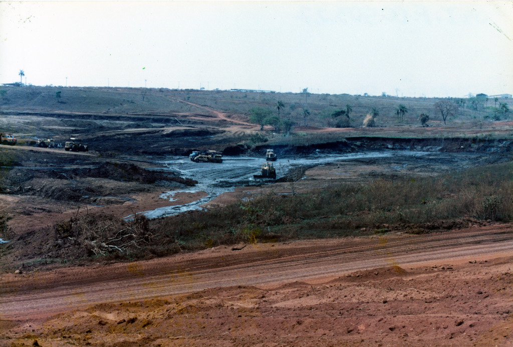 Fotografias referentes a construção da Usina Hidrelétrica Nova Ponte, apresentando imagens das obras civis principais: canal de adução, canal de descarga, subestação, canteiro de obras, túnel de desvio, ensecadeira, Casa de Força e da Rodovia Nova Ponte/Uberaba.