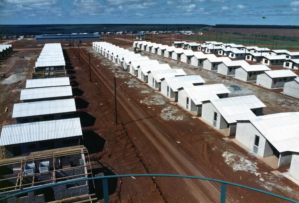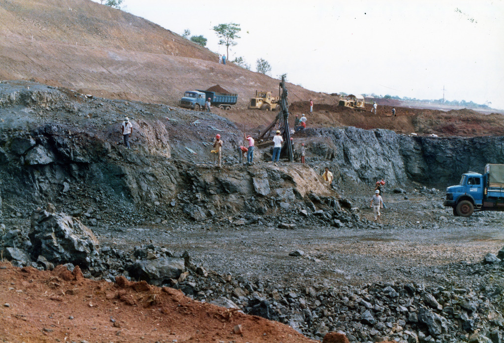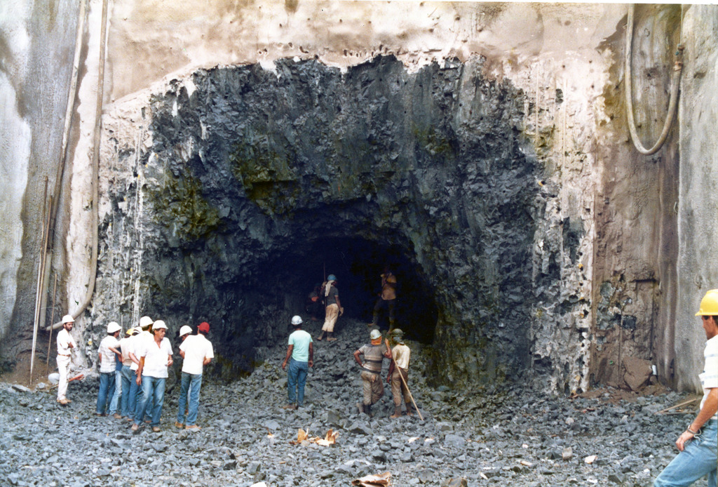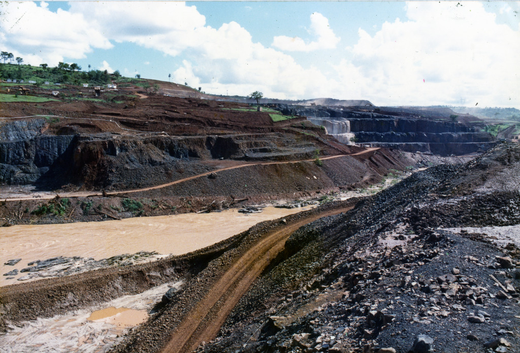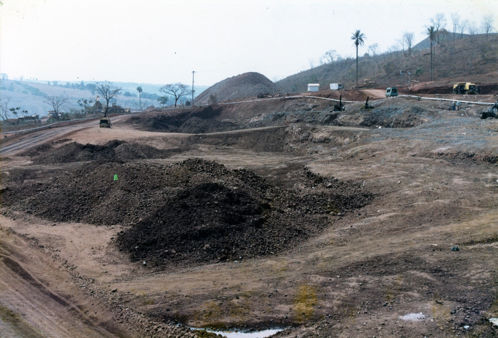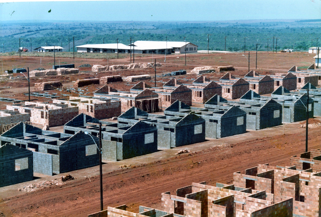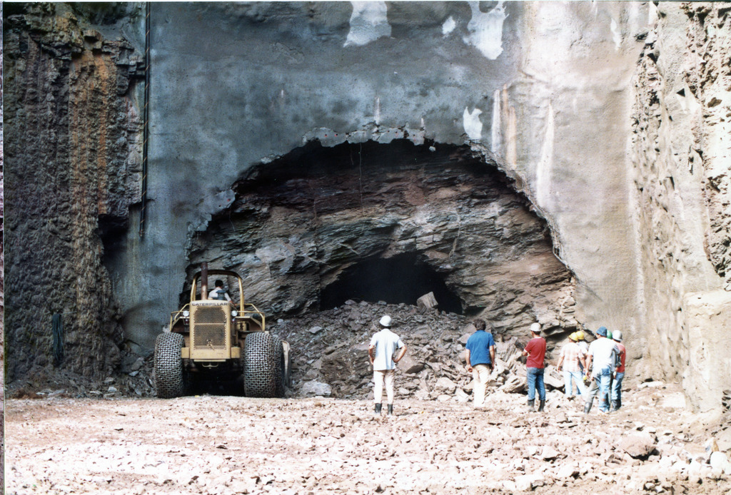 Fotografias referentes a construção da Usina Hidrelétrica Nova Ponte, apresentando imagens das obras civis principais: canal de adução, canal de descarga, subestação, canteiro de obras, túnel de desvio, ensecadeira, Casa de Força e da Rodovia Nova Ponte/Uberaba.
