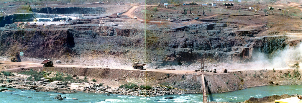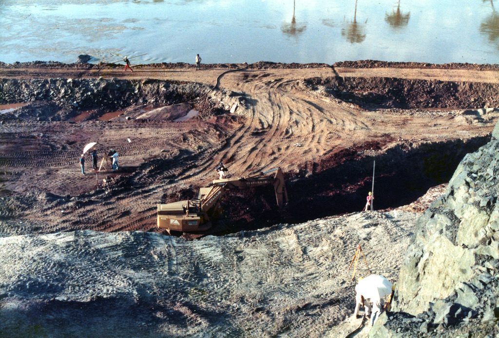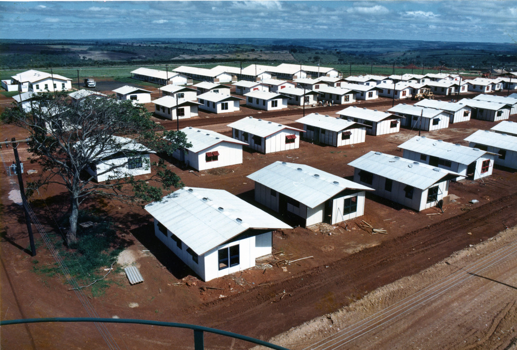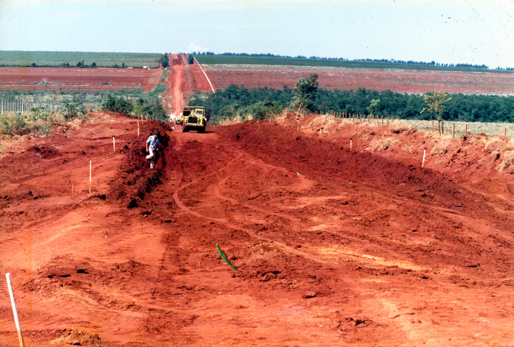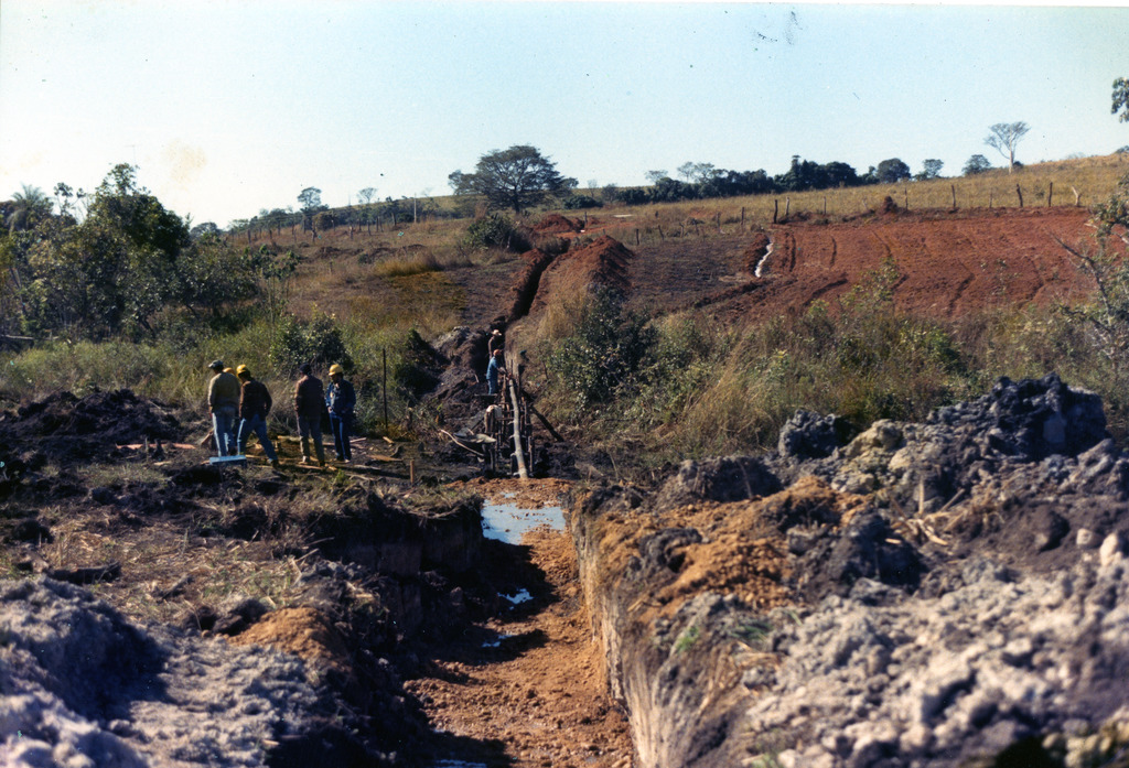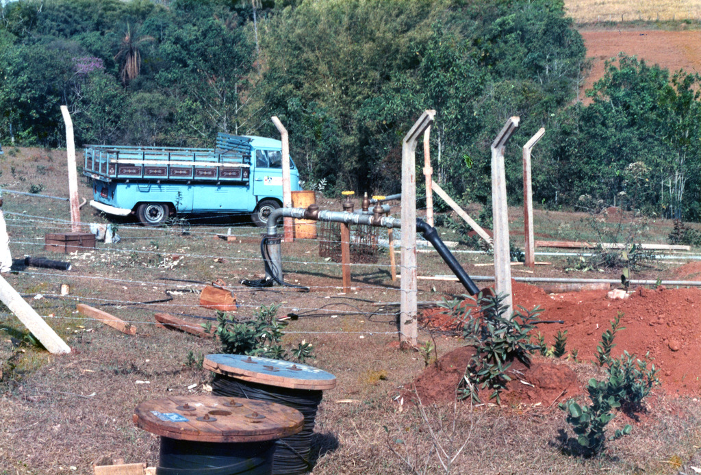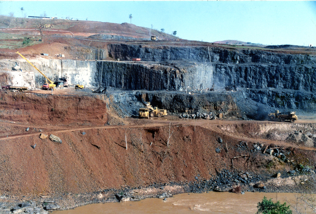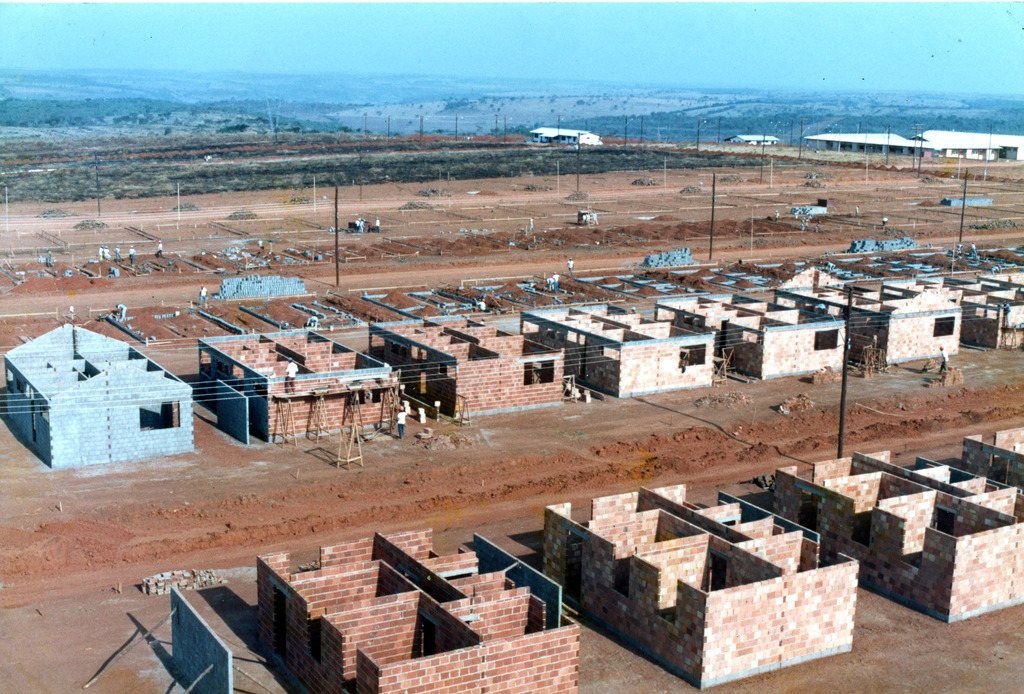 Fotografias referentes a construção da Usina Hidrelétrica Nova Ponte, apresentando imagens das obras civis principais: canal de adução, canal de descarga, subestação, canteiro de obras, túnel de desvio, ensecadeira, Casa de Força e da Rodovia Nova Ponte/Uberaba.