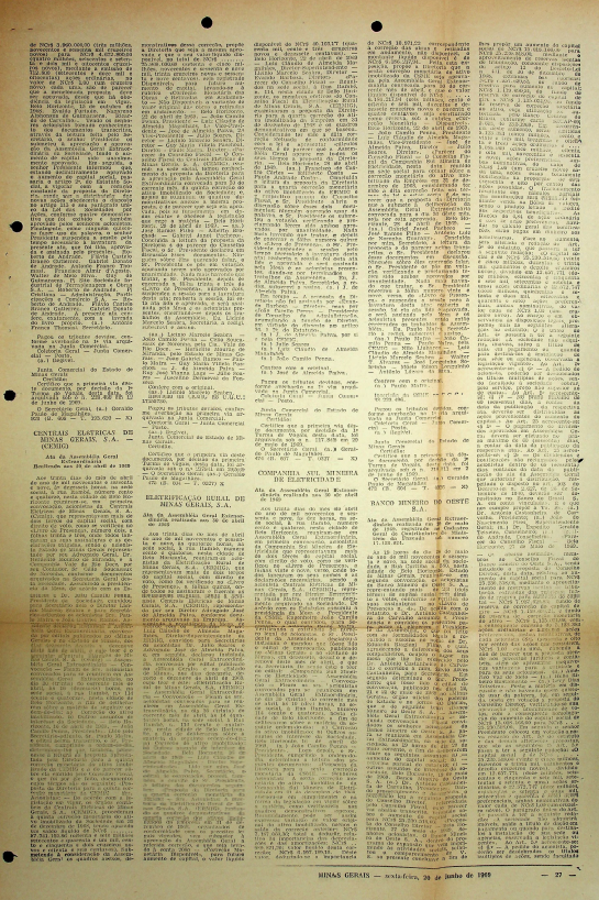 Documentos referentes à Assembleia Geral Extraordinária da Eletrificação Rural de Minas Gerais S.A. - ERMIG, realizada em 30 de abril de 1969, tendo como ordem do dia a correção do ativo imobilizado e outros assuntos de interesse da companhia.