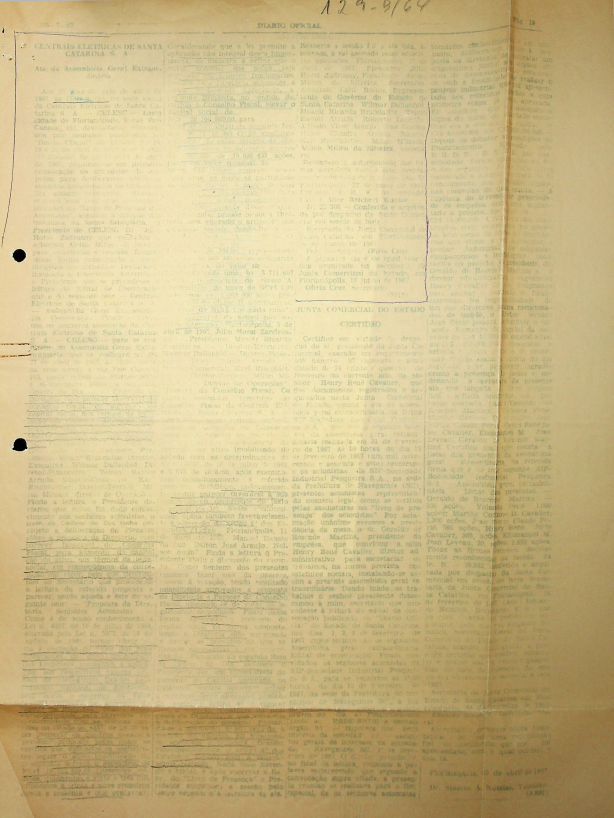 Registro de Assembleia Geral Extraordinária da CELESC de abril de 1967