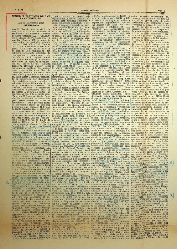 Registro de Assembleia Geral Ordinária da CELESC de abril 1968