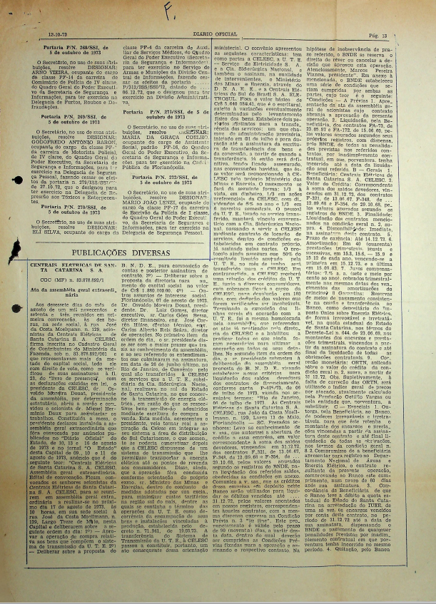 Registro de Assembleia Geral Extraordinária da CELESC de agosto de 1973
