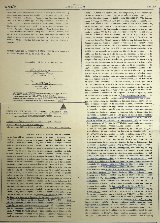 Registro de Assembleia Geral Ordinária da CELESC de fevereiro de 1975