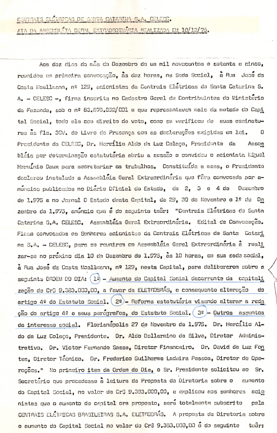 Registro de Assembleia Geral Extraordinária da CELESC de dezembro de 1975