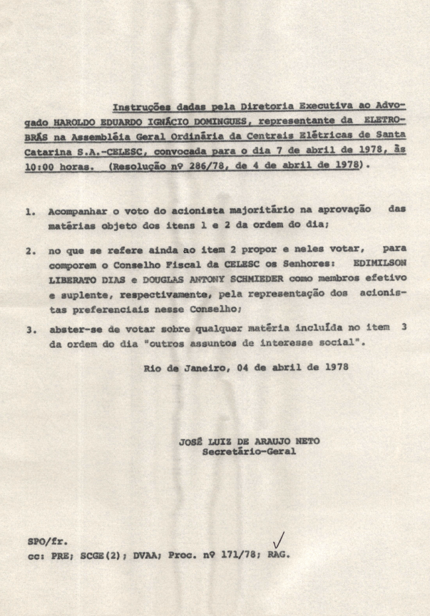 Registro de Assembleia Geral Ordinária da CELESC de abril de 1978