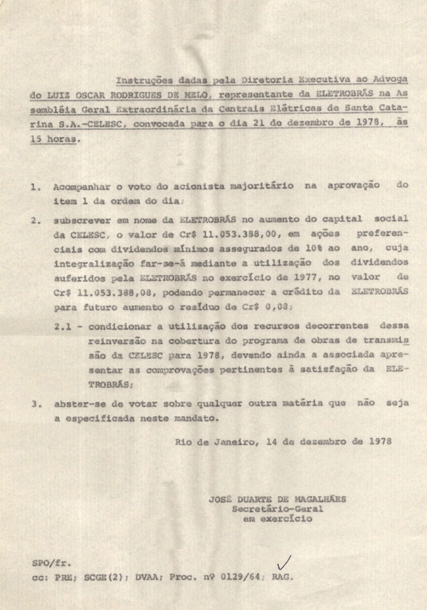 Registro de Assembleia Geral Extraordinária da CELESC de dezembro de 1978