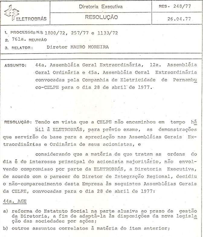 Registro da Assembleia Geral Ordinária da CELPE de abril de 1977