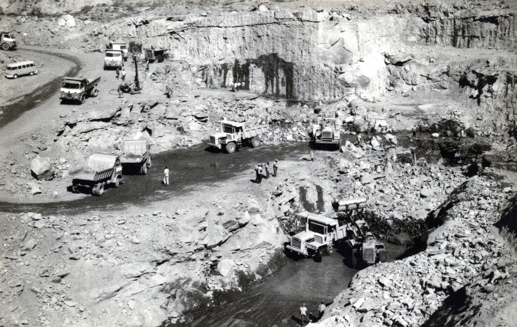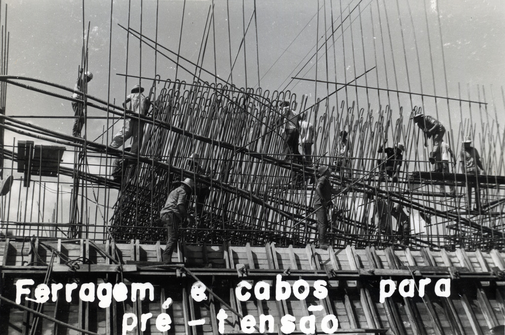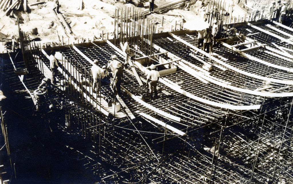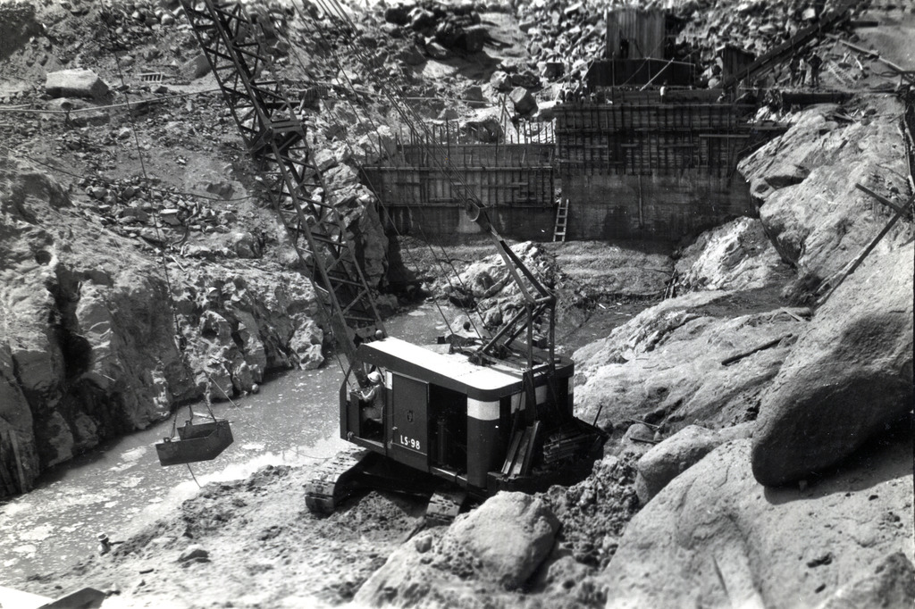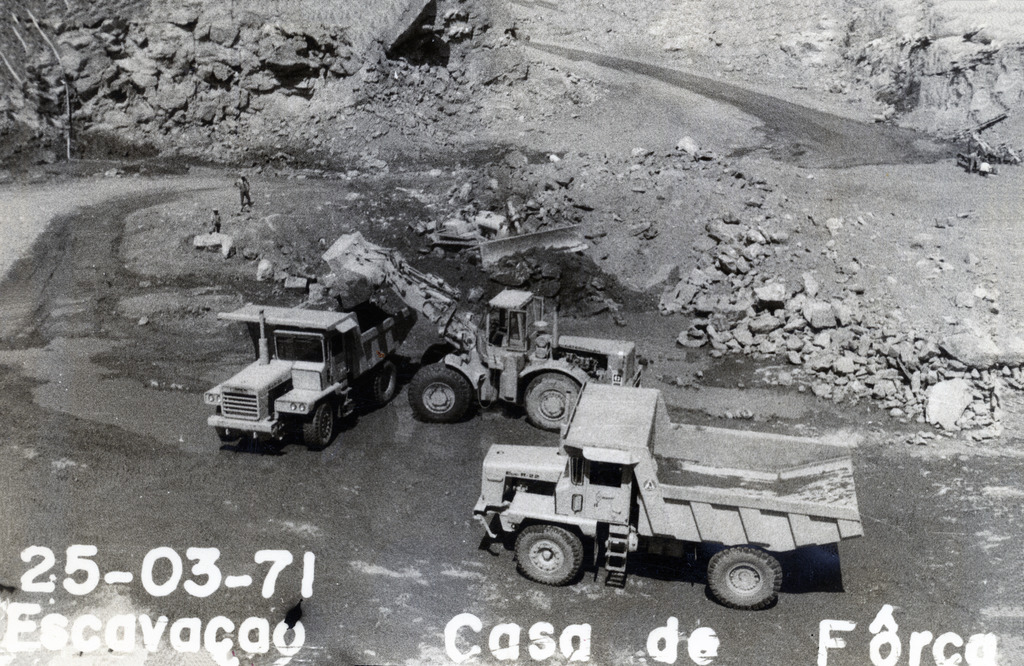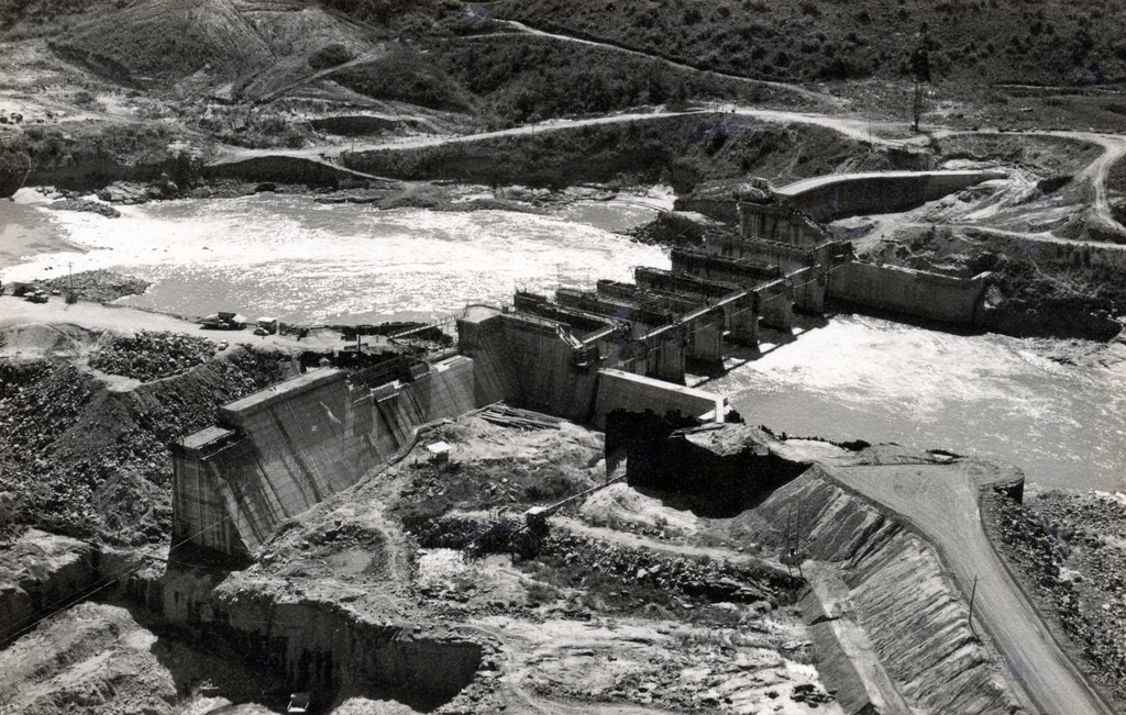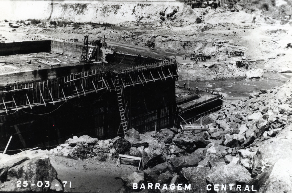 Fotografias referentes a construção da Usina Hidrelétrica Mascarenhas, com imagens das obras no vertedouro, barragem, ensecadeira e casa de força.