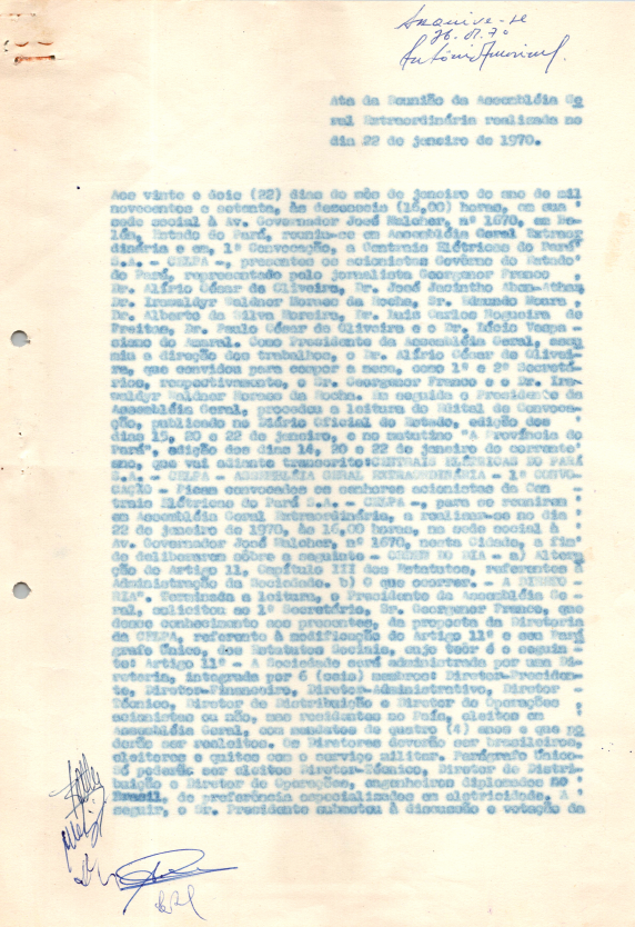 Registro de Assembleia Geral Extraordinária da CELPA de janeiro de 1970