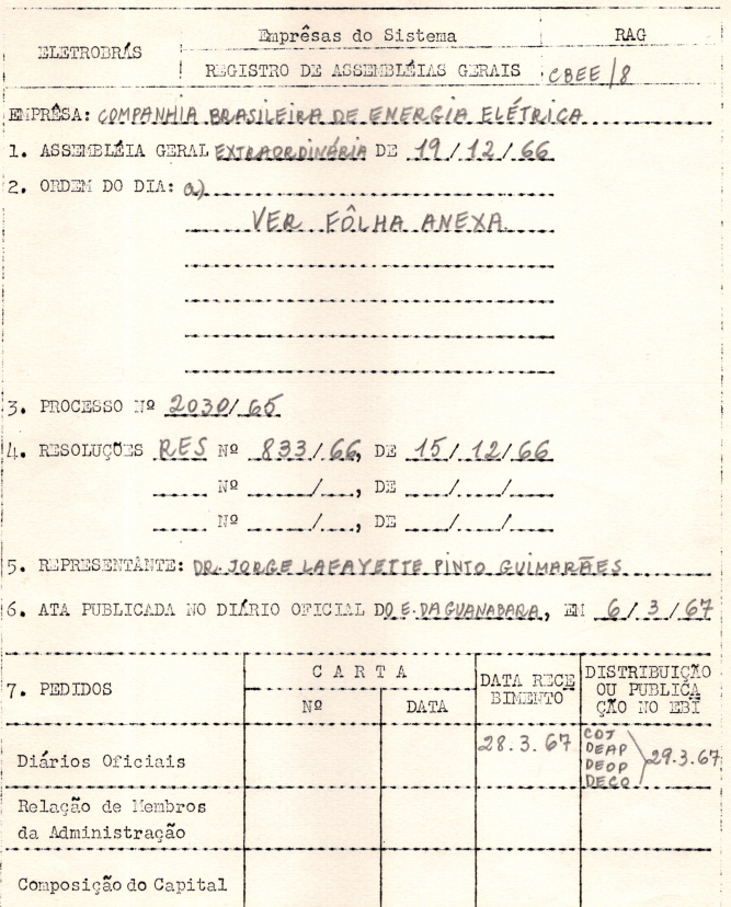 Documentos referentes à Assembleia Geral Extraordinária da Companhia Brasileira de Energia Elétrica - CBEE, realizada em 19 de dezembro de 1966, tendo como ordem do dia aprovar o aumento do capital social e alteração do estatuto social.