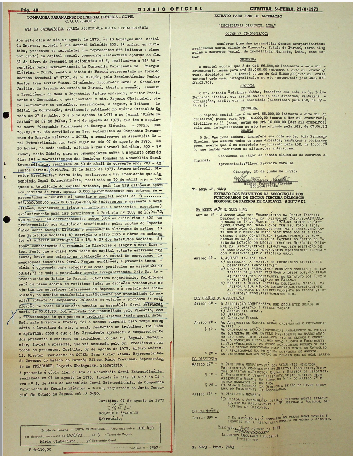 Registro de Assembleia Geral Extraordinária da COPEL de agosto de 1973