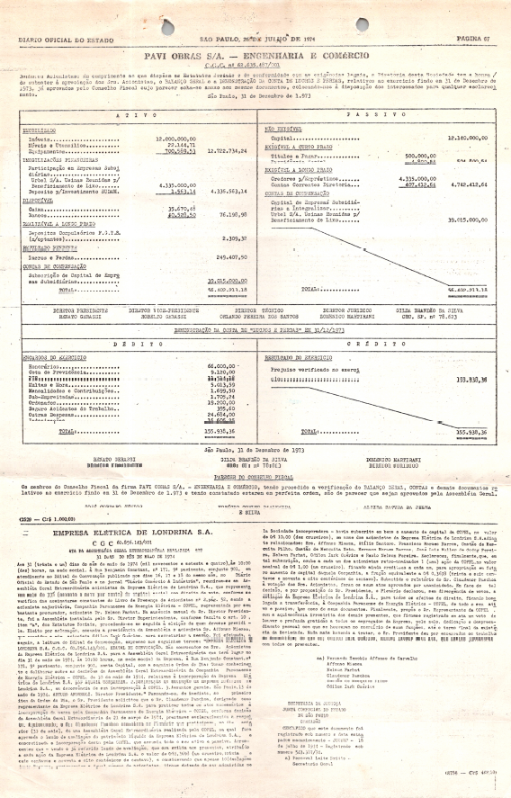 Registro de Assembleia Geral Extraordinária da COPEL de maio de 1974