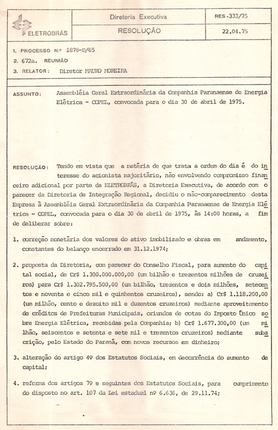 Registro de Assembleia Geral Extraordinária da COPEL de abril de 1975