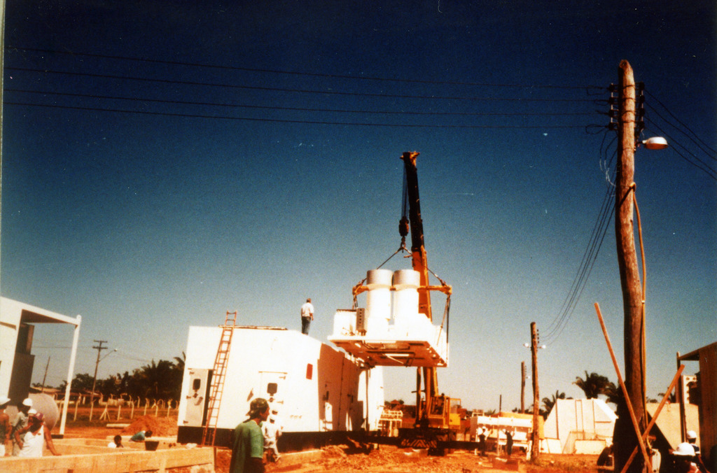 Conjunto fotográfico da construção da Usina Termelétrica Rio Acre, apresentando imagens das obras e montagem dos equipamentos.