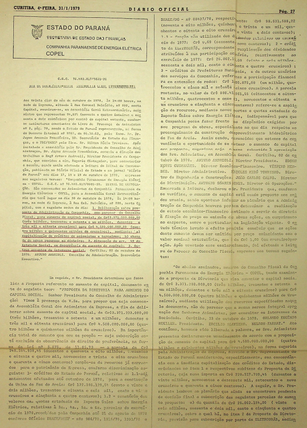 Registro de Assembleia Geral Extraordinária da COPEL de outubro de 1978
