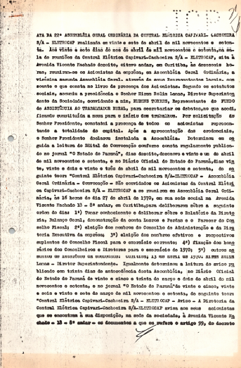 Registro de Assembleia Geral Ordinária da Eletrocap de abril de 1970