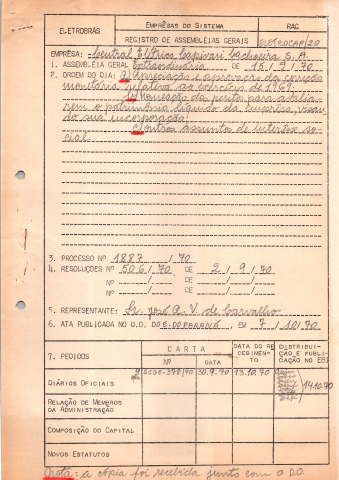 Registro de Assembleia Geral Extraordinária da Eletrocap de setembro de 1970