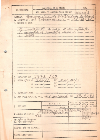 Registro de Assembleia Geral Extraordinária da Coelce de dezembro de 1971