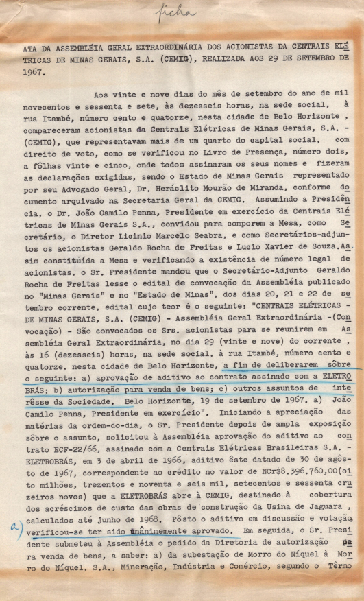 Registro de Assembleia Geral Extraordinária da CEMIG de setembro de 1967