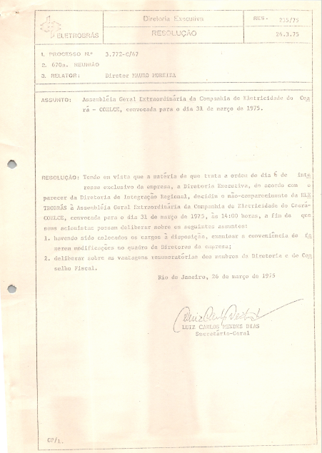 Registro de Assembleia Geral Extraordinária da Coelce de março de 1975