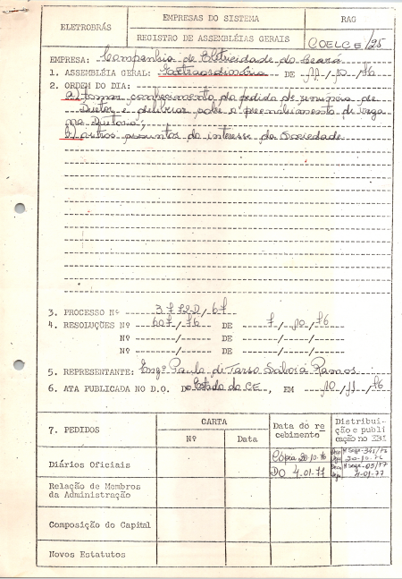 Registro de Assembleia Geral Extraordinária da Coelce de dezembro de 1976