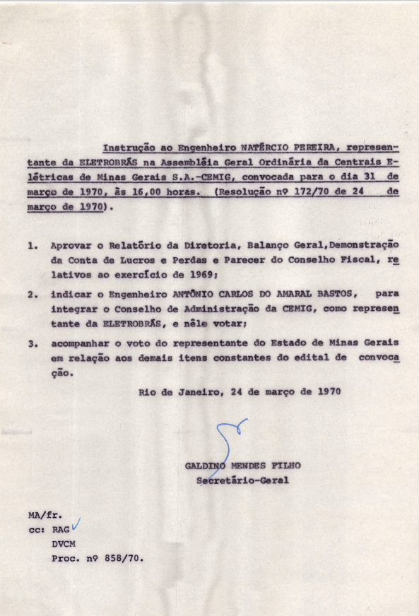 Registro da Assembleia Geral Ordinária da CEMIG de março de 1970