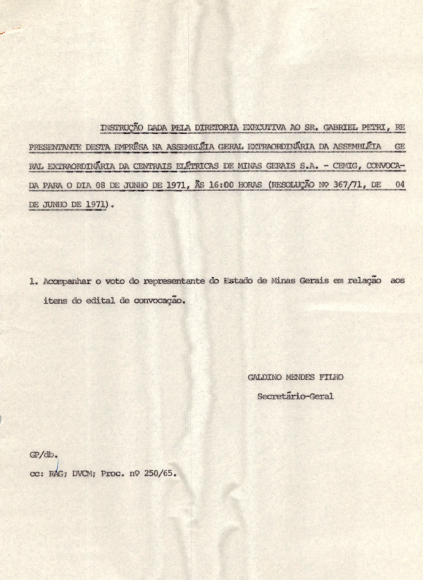 Registros da Assembleia Geral Extraordinária da CEMIG de junho de 1971