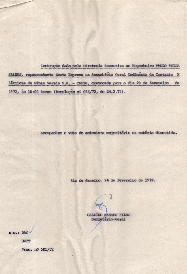 Registros da Assembleia Geral Ordinária da CEMIG de fevereiro de 1972