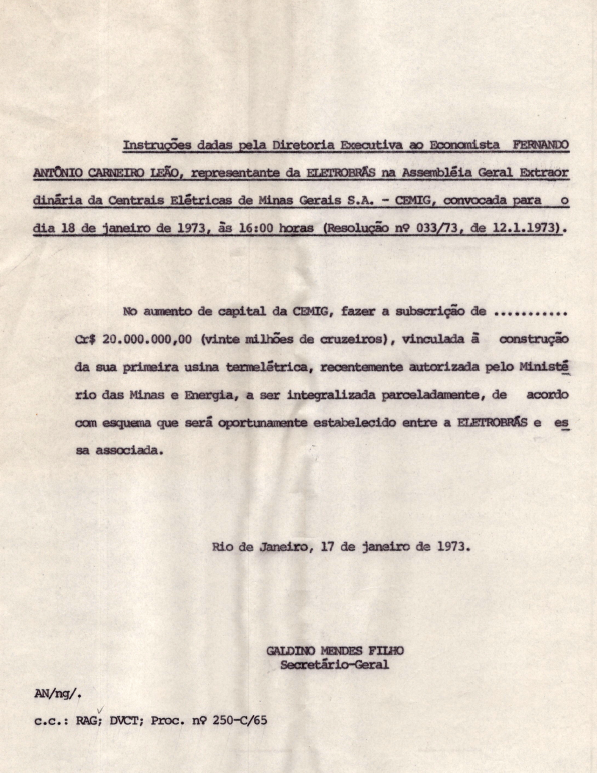 Registros da Assembleia Geral Extraordinária da CEMIG de 17 de janeiro de 1973