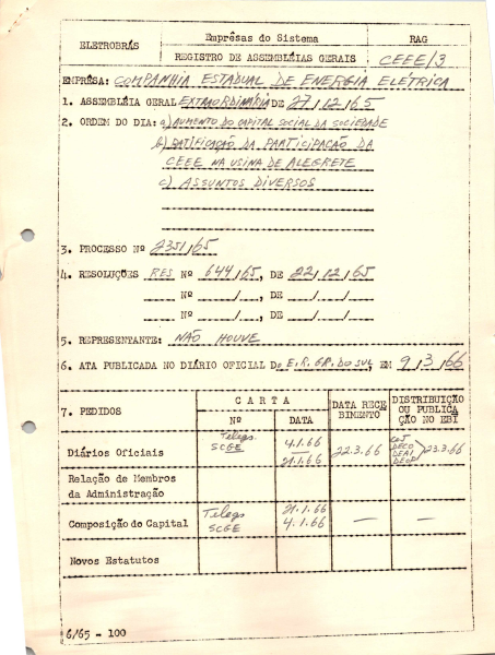Registro de Assembleia Geral Extraordinária da CEEE de dezembro de 1965
