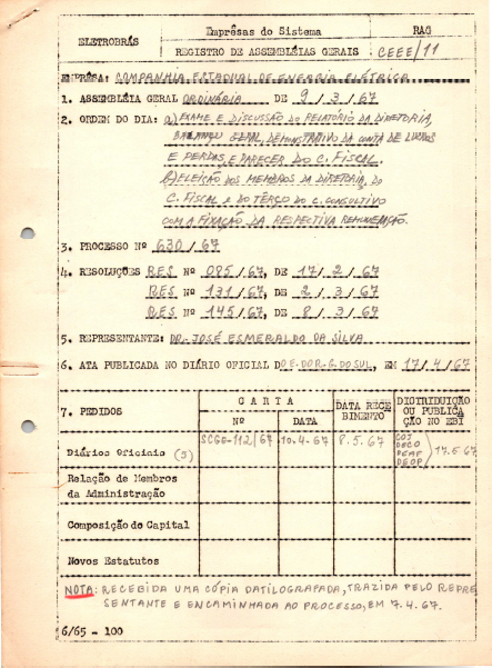 Registro de Assembleia Geral Ordinária da CEEE de março de 1967