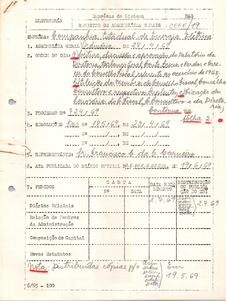 Registro da Assembleia Geral Ordinária da CEEE de abril de 1969