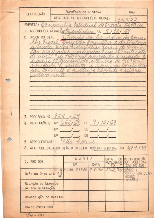 Registro da Assembleia Geral Extraordinária da CEEE de dezembro de 1969