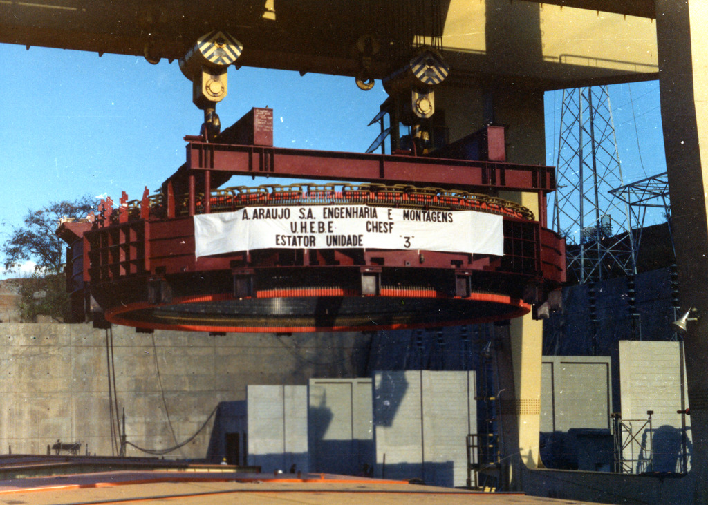 03 Casa de máquinas - montagem da câmara de ar do gerador 3 - jan./89.
