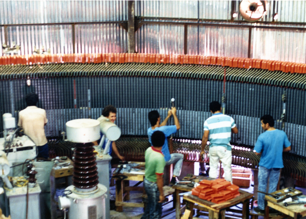57 Área de montagem - execução da solda das bobinas do estator unidade IV - out./89.