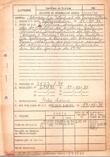 Registros da Assembleia Geral Extraordinária da CEEE de outubro de 1971