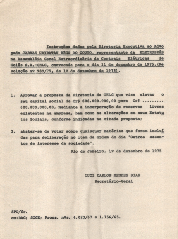 Registros da Assembleia Geral Extraordinária da CELG de dezembro de 1975