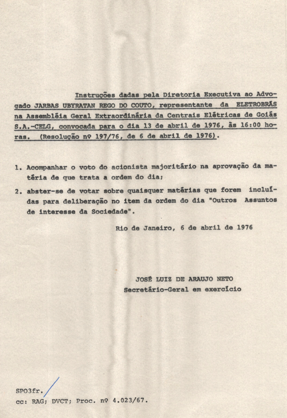 Registros da Assembleia Geral Extraordinária da CELG de abril de 1976