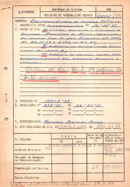 Registros da Assembleia Geral Extraordinária da CEEE de abril de 1973