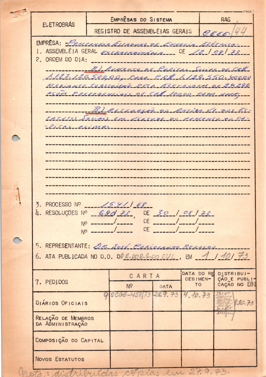 Registros da Assembleia Geral Extraordinária da CEEE de setembro de 1973