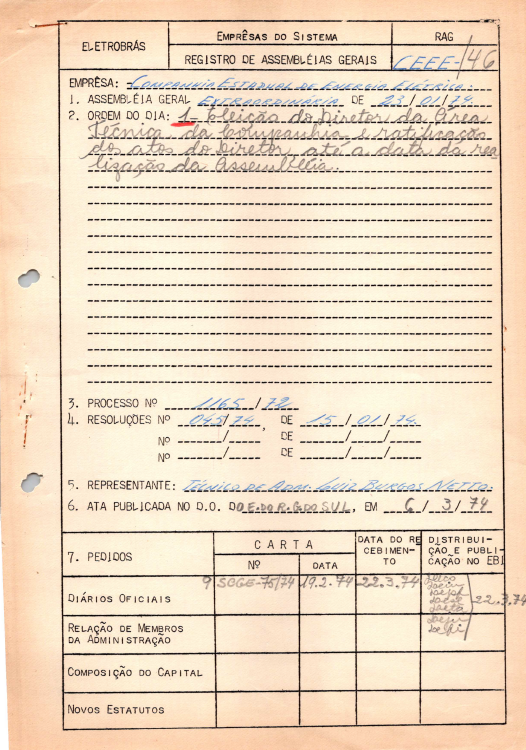 Registros da Assembleia Geral Extraordinária da CEEE de janeiro de 1974