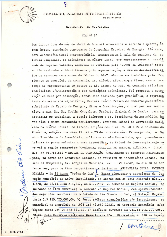Registros da Assembleia Geral Extraordinária da CEEE de abril de 1974