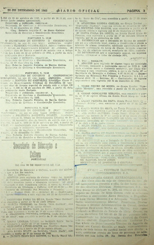Registros da Assembleia Geral Extraordinária da CEMAT de dezembro de 1968
