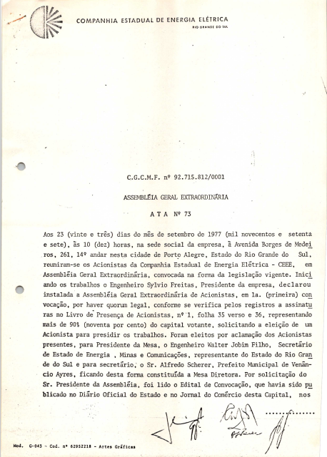 Registros da Assembleia Geral Extraordinária da CEEE de setembro de 1977